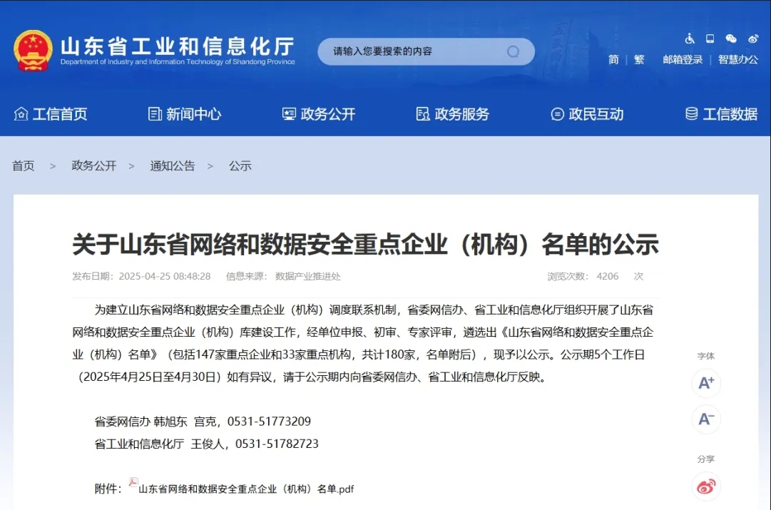 近日,在省委網(wǎng)信辦、省工業(yè)和信息化廳聯(lián)合開(kāi)展的山東省網(wǎng)絡(luò)和數(shù)據(jù)安全重點(diǎn)企業(yè)(機(jī)構(gòu))庫(kù)建設(shè)工